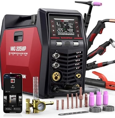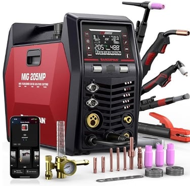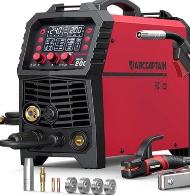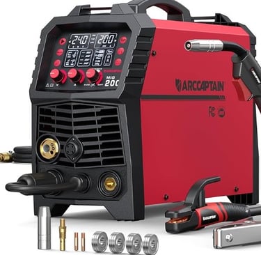 ARCCAPTAIN 9-in-1 welding and plasma cutting in one machine. Features app control, pulsed MIG, DC TIG, stick, and aluminum capabilities on 120/240V.