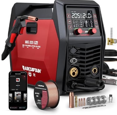 ARCCAPTAIN iControl MIG205 Pro MIG Welder 205A 120V 240V Gas MIG/Gasless Flux MIG/MMA Stick/Lift TIG/Spot Welding/Spool Gun Aluminum Welding Machine, 6 in 1