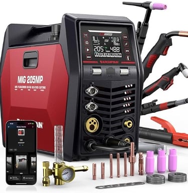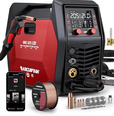 ARCCAPTAIN iControl MIG205 Pro 205A 120V/240V 6-in-1 welder featuring MIG, TIG, stick, and spool gun support.